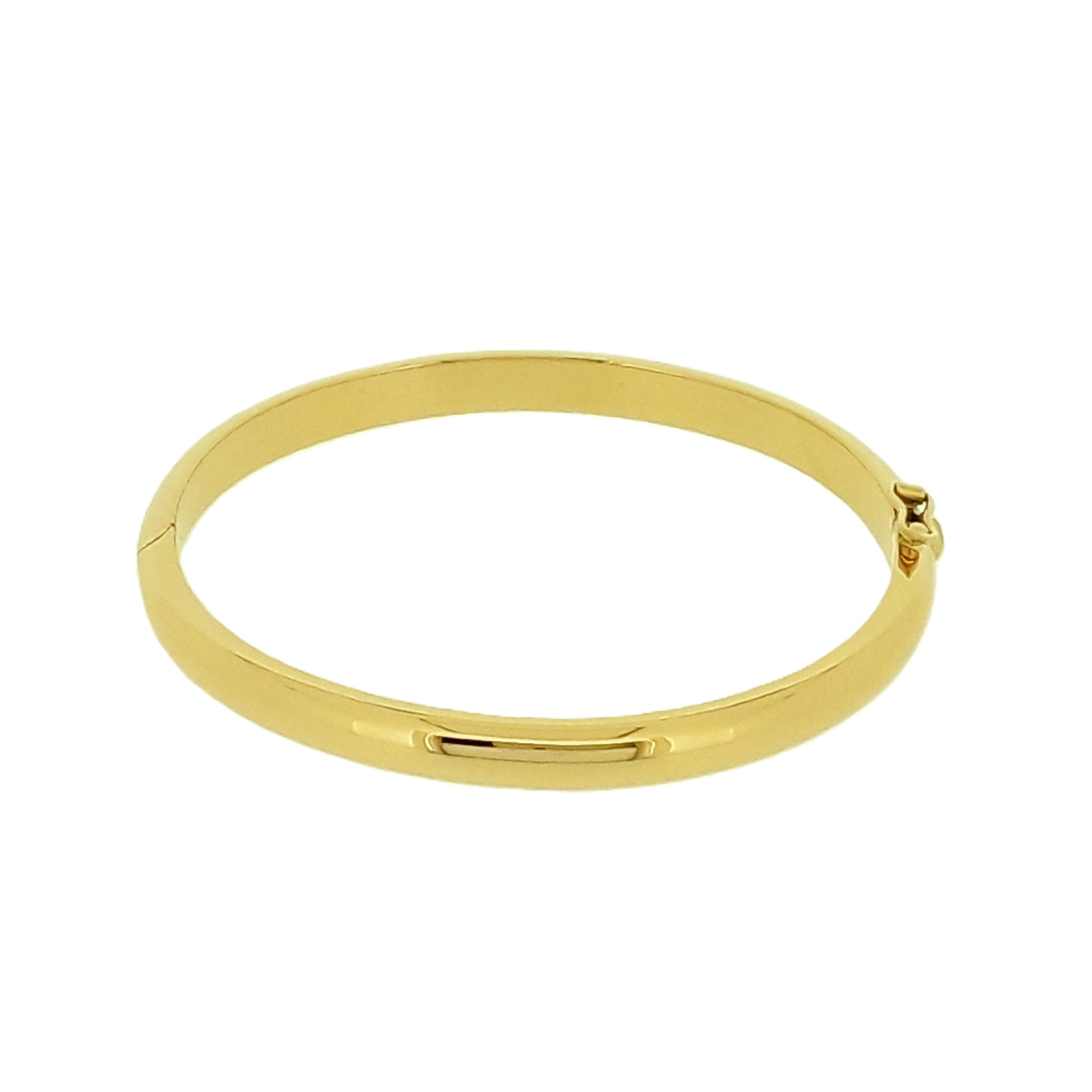 Bracelet jonc ouvrant sur charnière – forme ovale – section ½ jonc – or jaune 3N 750‰ – fermoir cliquet +1 huit de sûreté.